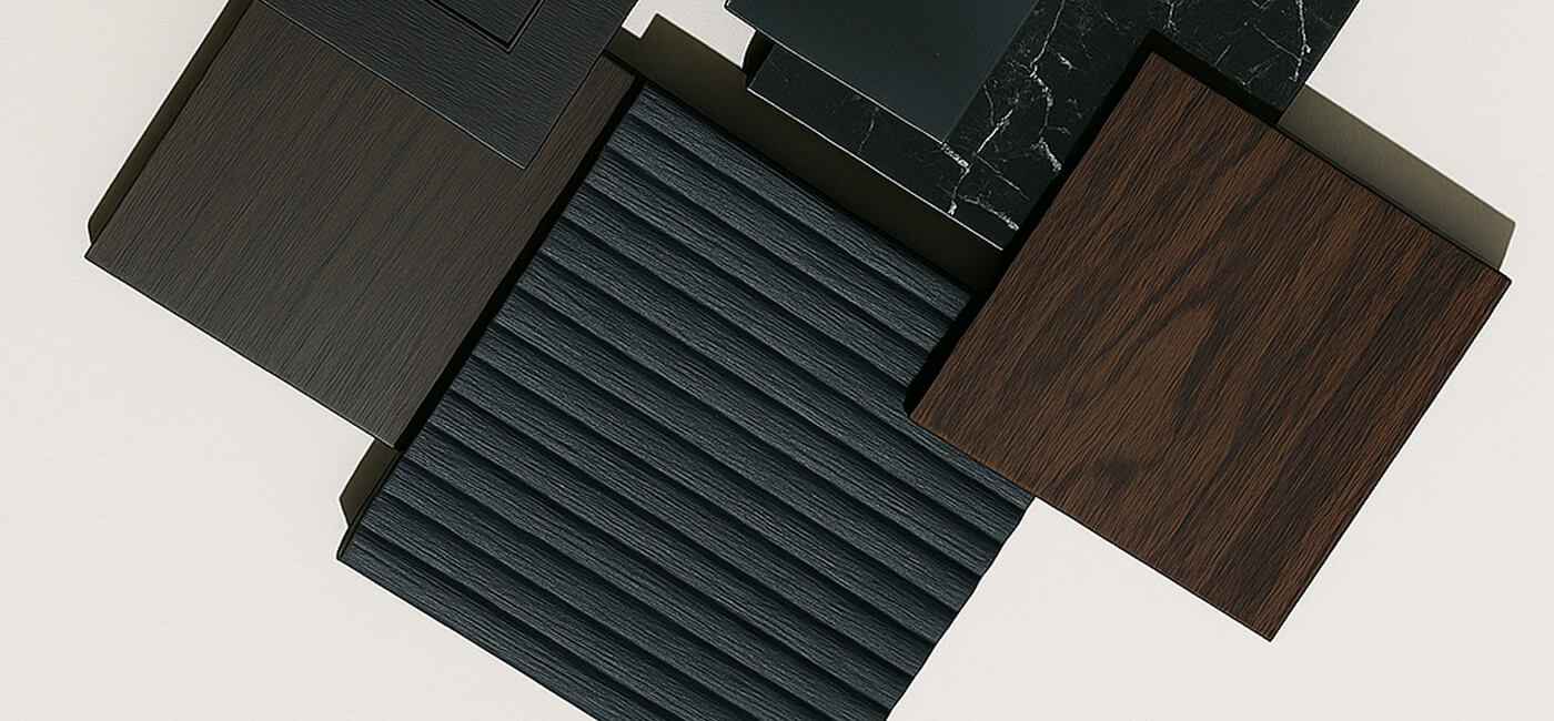 Стеновые панели: 3D-геометрия, комбинация материалов (дерево + металл, МДФ + подсветка), встроенные ниши и полки.